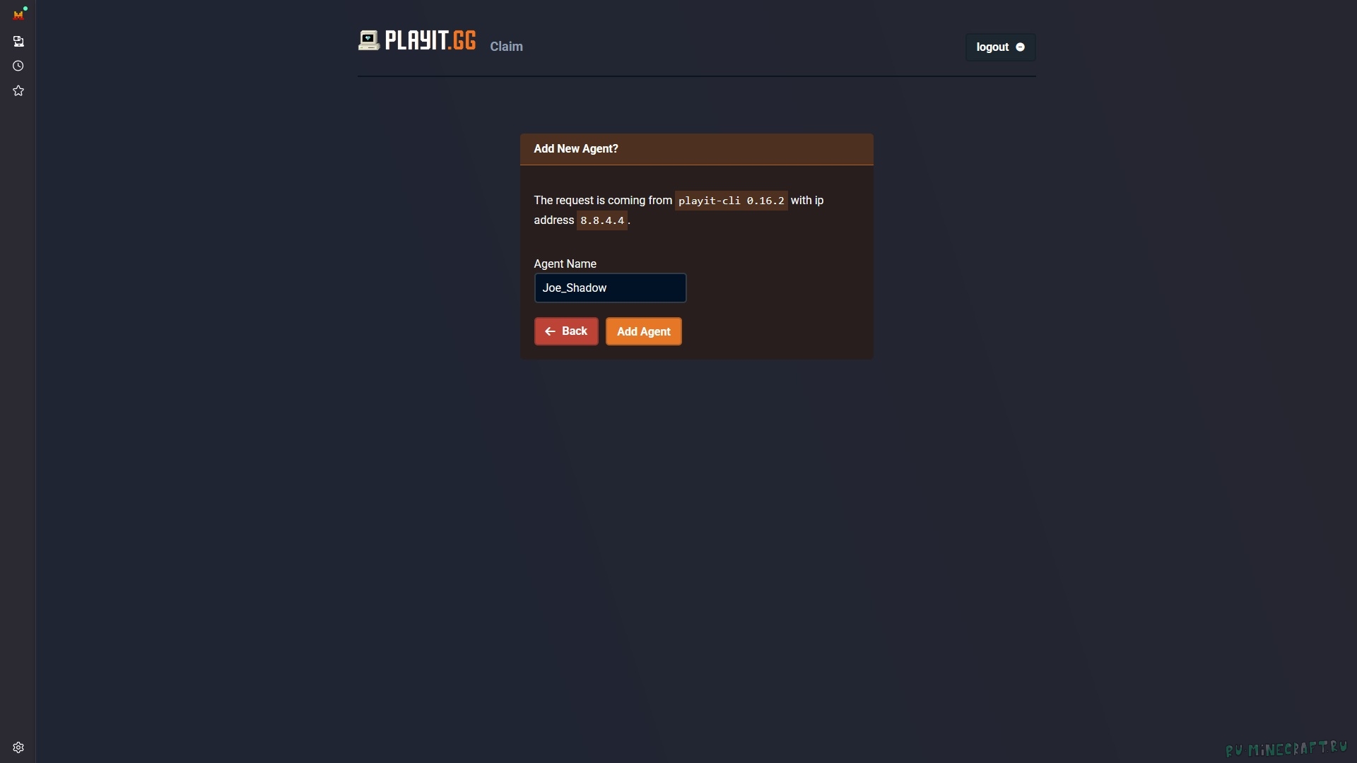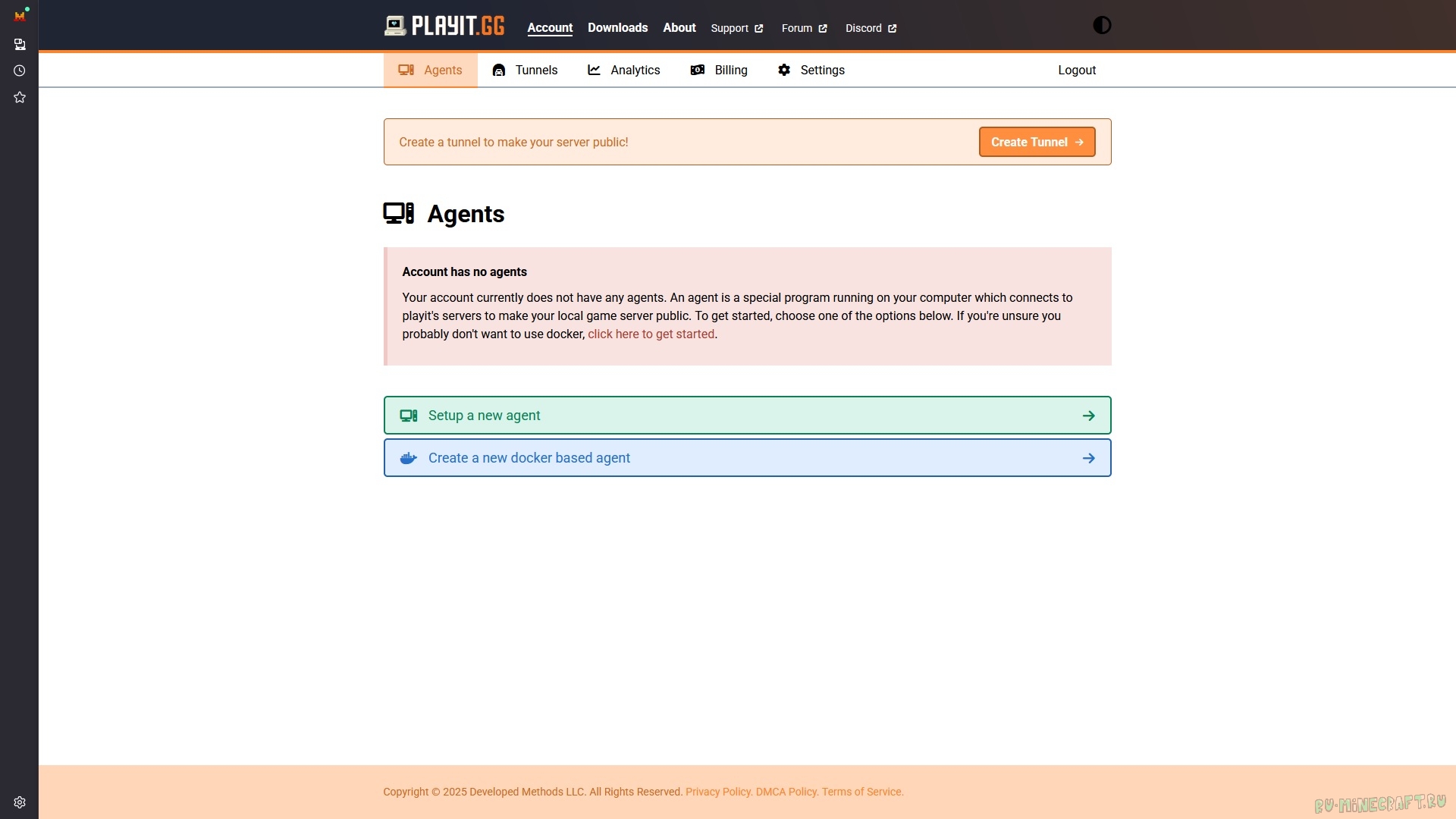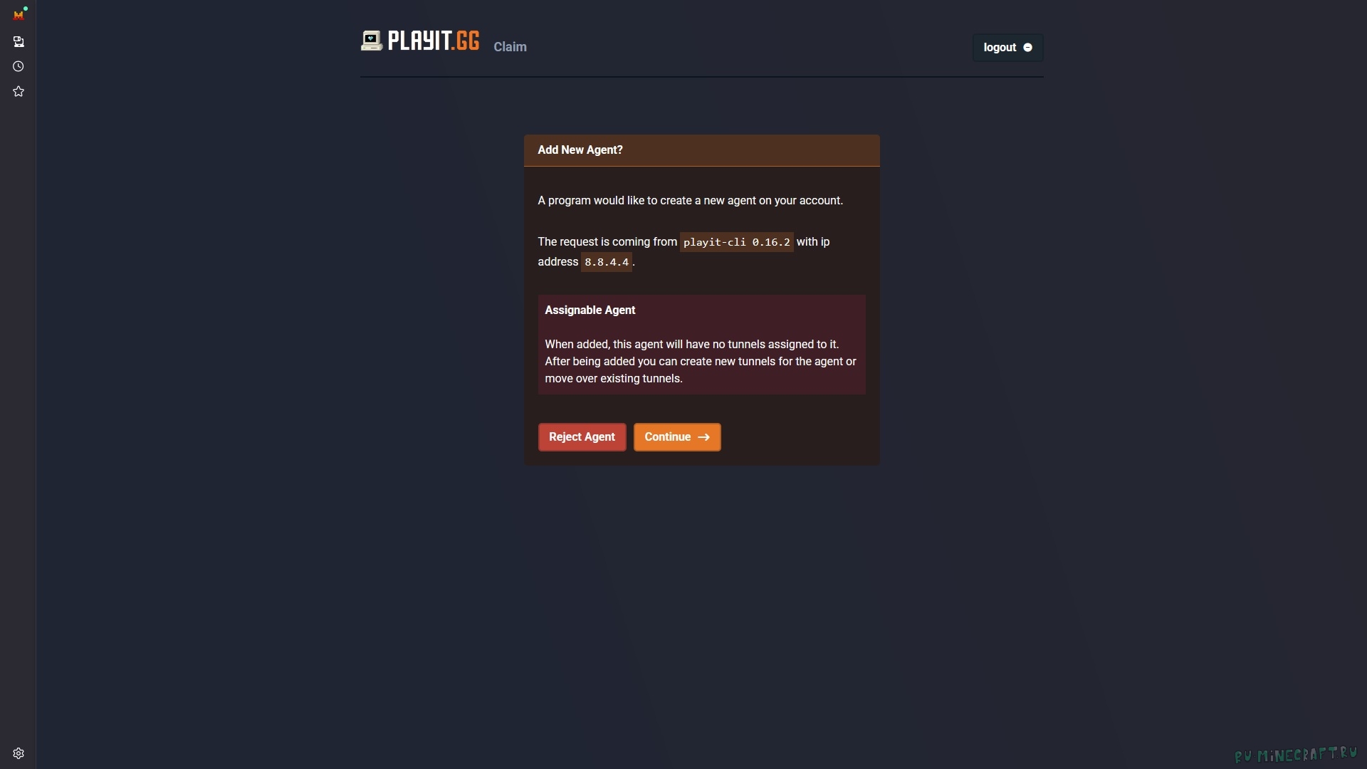 Личный кабинет в playitДалее возвращаемся к этапу с окном консоли, и ещё раз открываем ссылку, которая там появилась, перейдя по ней, начнётся подключение вашего компьютера с серверами playit. Подтверждаем что мы хотим подключится, меняем в дальнейшем имя агента, и мы снова окажемся в личном кабинете