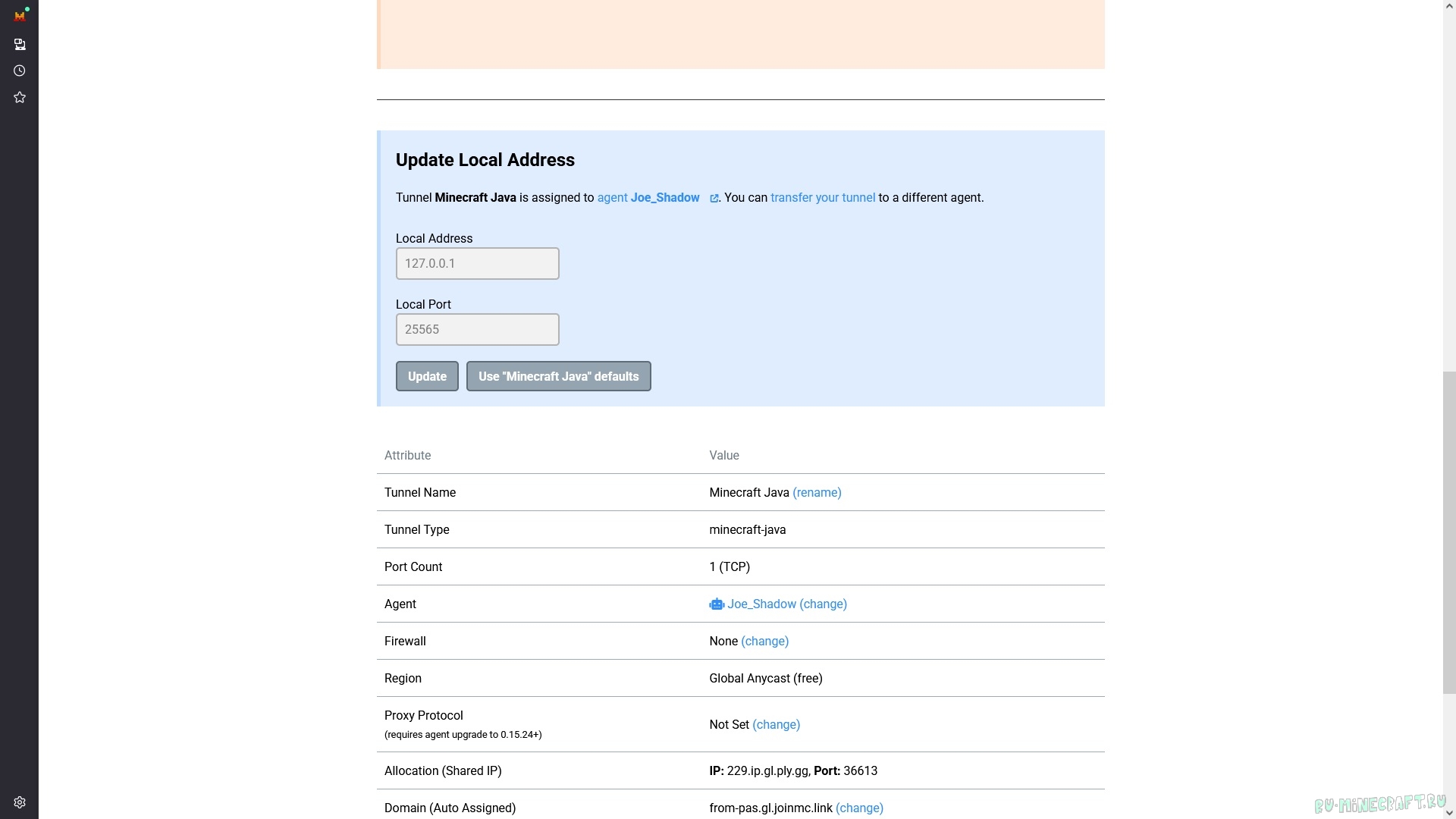 Minecraft Java, и ждём окончательную настройку туннеля. Так как мы выбрали Minecraft Java, по стандарту будет выставлен порт
