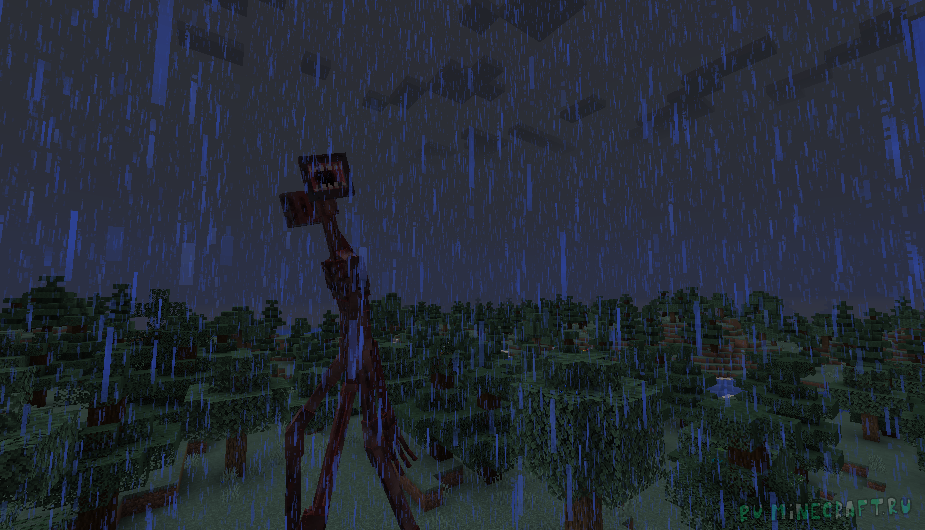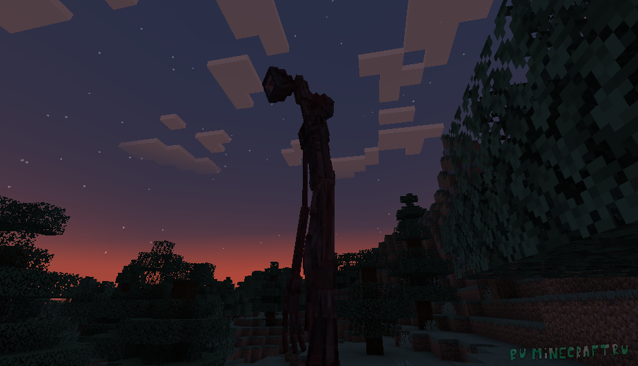 Мод Siren Head: The Arrival добавляет в майнкрафт большого монстра сиреноголового. Он будет следить за вами среди деревьев, и, конечно же, пытаться убить вас разными способами.