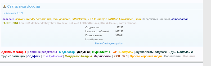 Впрочем, продлилось такое безумие совсем недолго, и вскоре многим (отметим - не всем) выдали обыденные группы, а некоторые и вовсе удостоились повышения - Софт_Глайд и Джеру получили олдфага, а Сеньяв - труъ олдфага.
