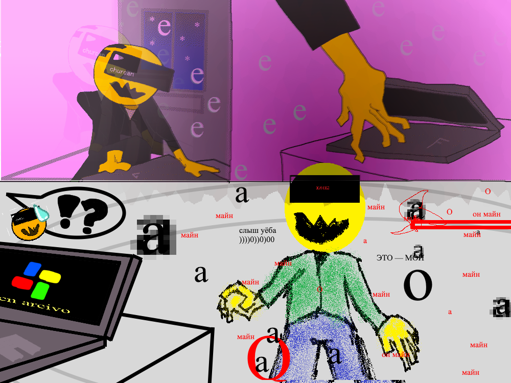 5 0 0 0: Так. Контекст, значит... Скетч (файл "945bd861a648db23.png") датируется серединой 2017, страшная картинка со Стивом Баллмером (файл "5f80e8cd2bfbdad0.png") сохранена у меня чуть дольше, с 2016. Это, я помню, был небольшой период когда у меня были потуги в пэинте что-то перерисовывать, но еще до того как я нашло Firealpaca. У меня тогда даже в тамблере это постилось время от времени.