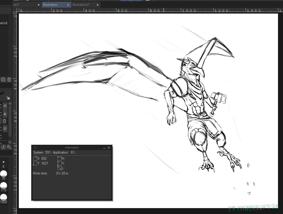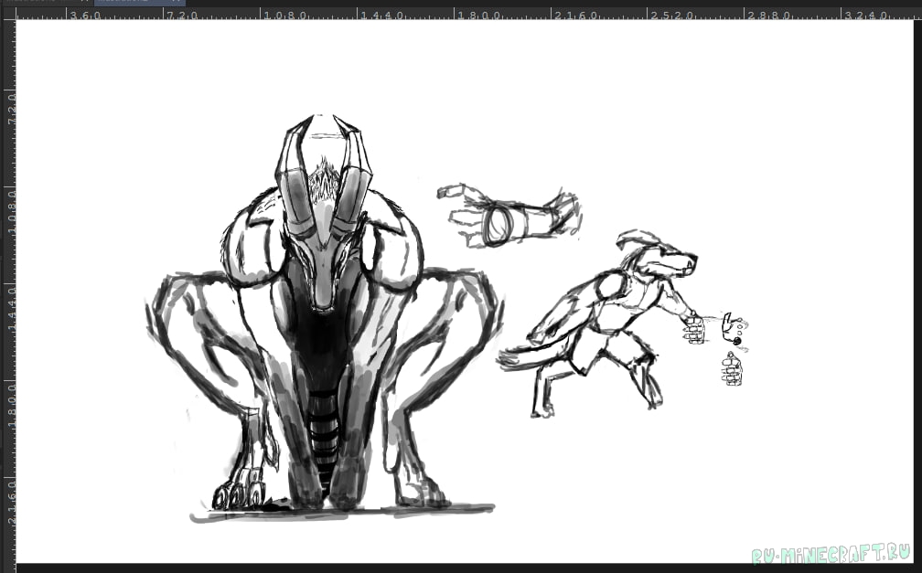 Я могу даже вывалить небольшие скетчики по обоим тварям. (Дедпет любезно предоставил нам несколько картинок, просмотреть которые вы можете ниже.) Так называемый (пока что) эксклюзивный контент. Также могу приложить раунд (третья картинка), который мы потеряли. Он был готов примерно на 45%, но я тильтанул из-за того, что уже все галопом по европам ушли, да и тайминги работы просто опять сранина ради сомнительного результата (четвертая картинка).
