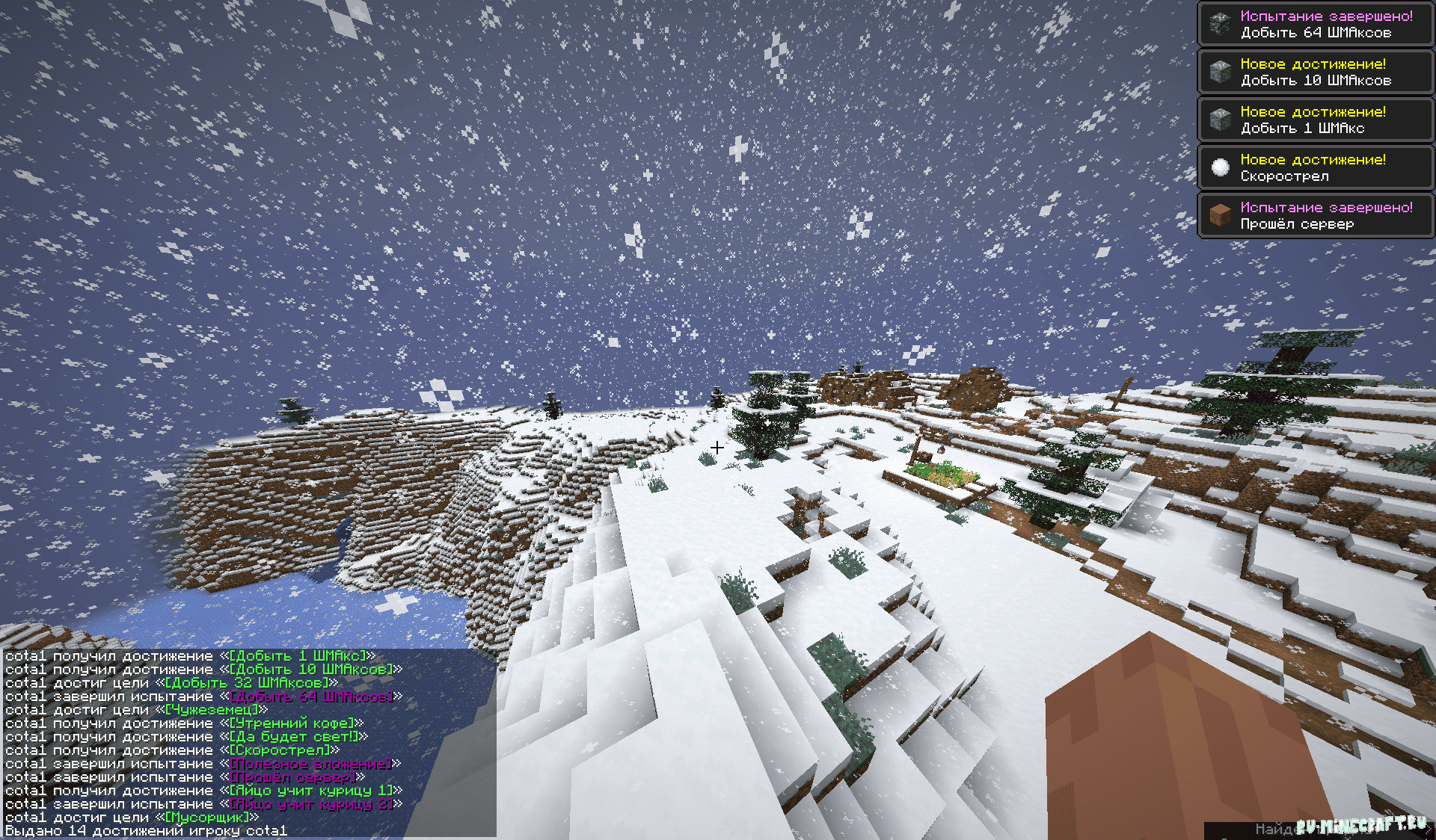 Дата-пак сервера ШМА добавляет 14 новых достижений и механику с переименованной алмазной рудой — «Шмаксы» (алмазная руда из глубинного сланца). За выполнение достижений выдаются рецепты крафта, опыт в зависимости от сложности и, в некоторых случаях, шмаксы. Добавлены крафты источников света уровней 15, 12, 10, 8 и 5.