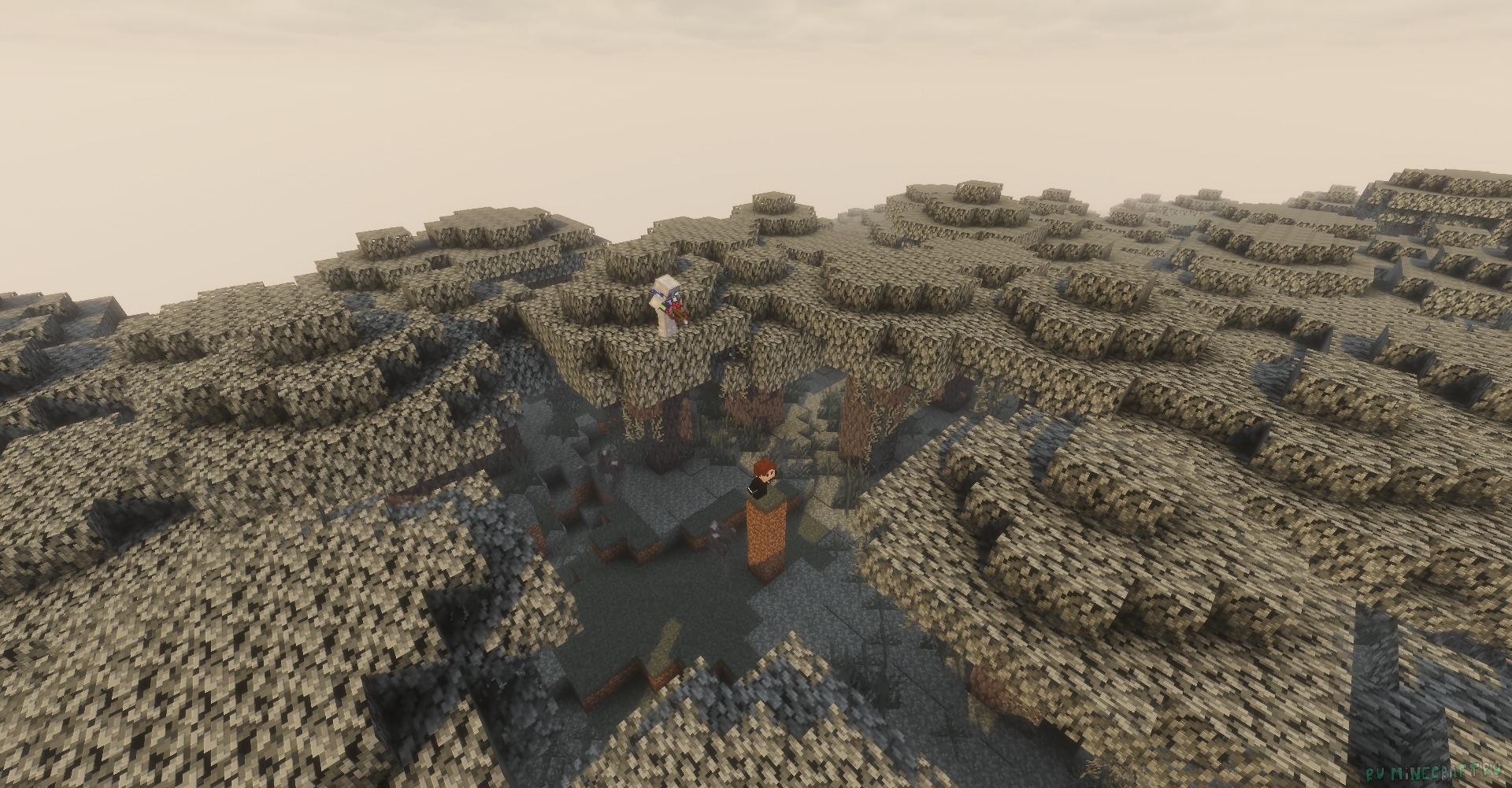 На карте сида вы встретите бледный биом! Не забудь попутешествовать по нему и потусоваться со скрипунами! Ищи его на координатах 300 111 -225!