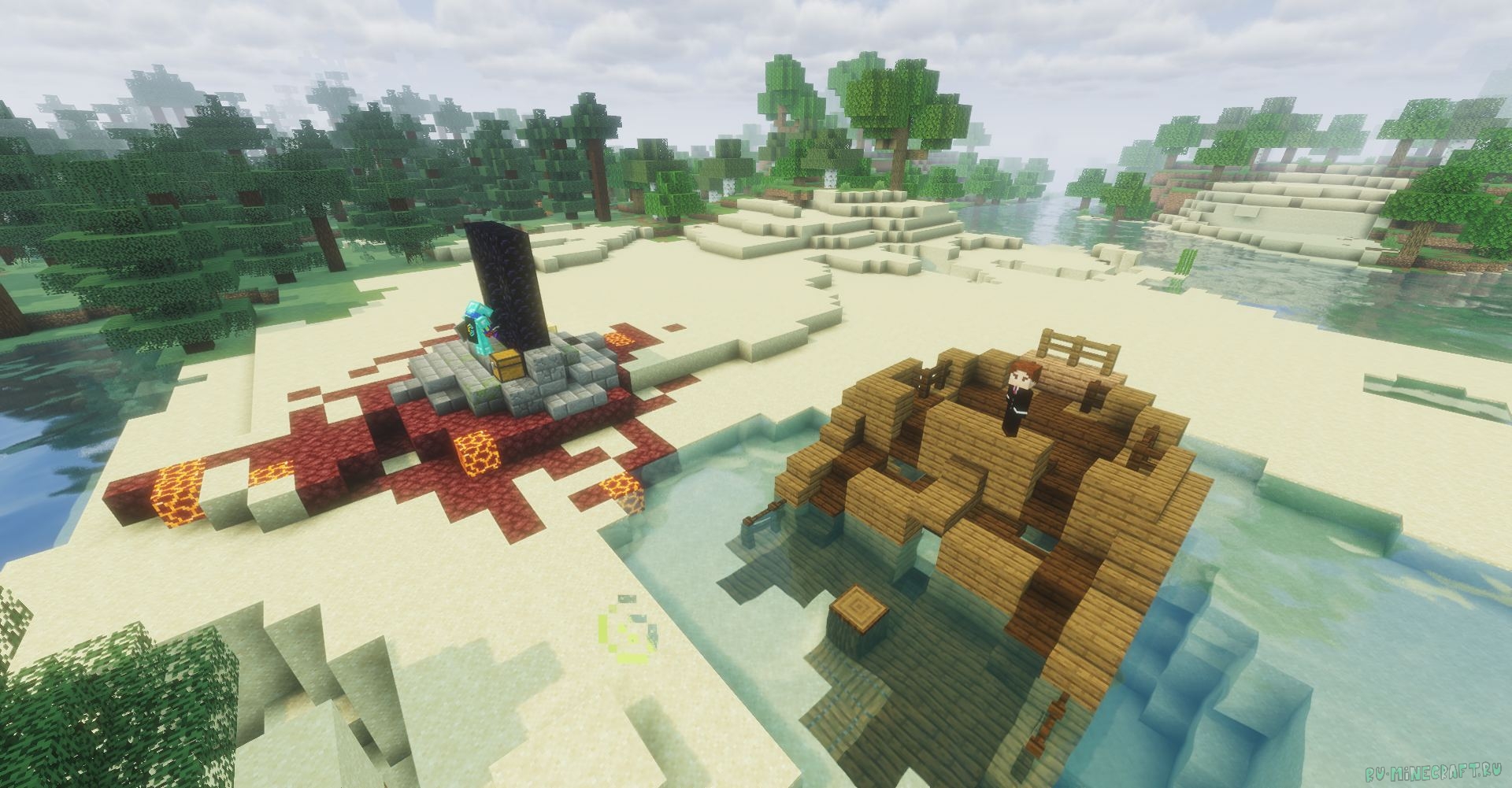 Надоел верхний мир? Уже всё изучил и стало скучно? отправься в путешествие в незер с двойной выгодой! На координатах -1074 64 -722 будет и портал и половина корабля!