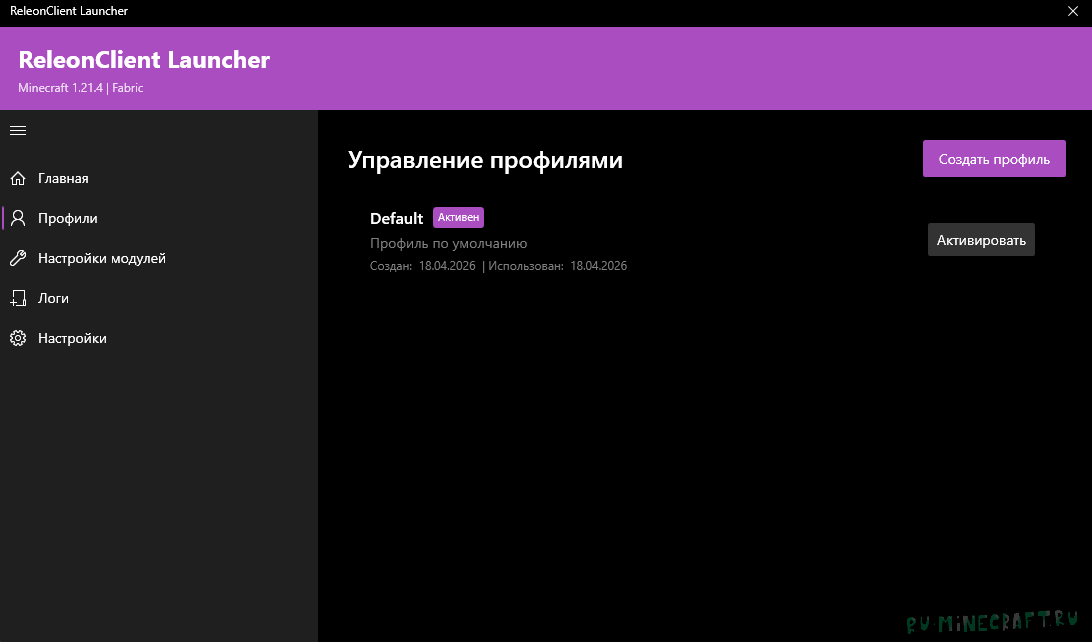 [center]ReleonClient Launcher v1.3 — чит-клиент для Minecraft 1.21.4 Fabric
