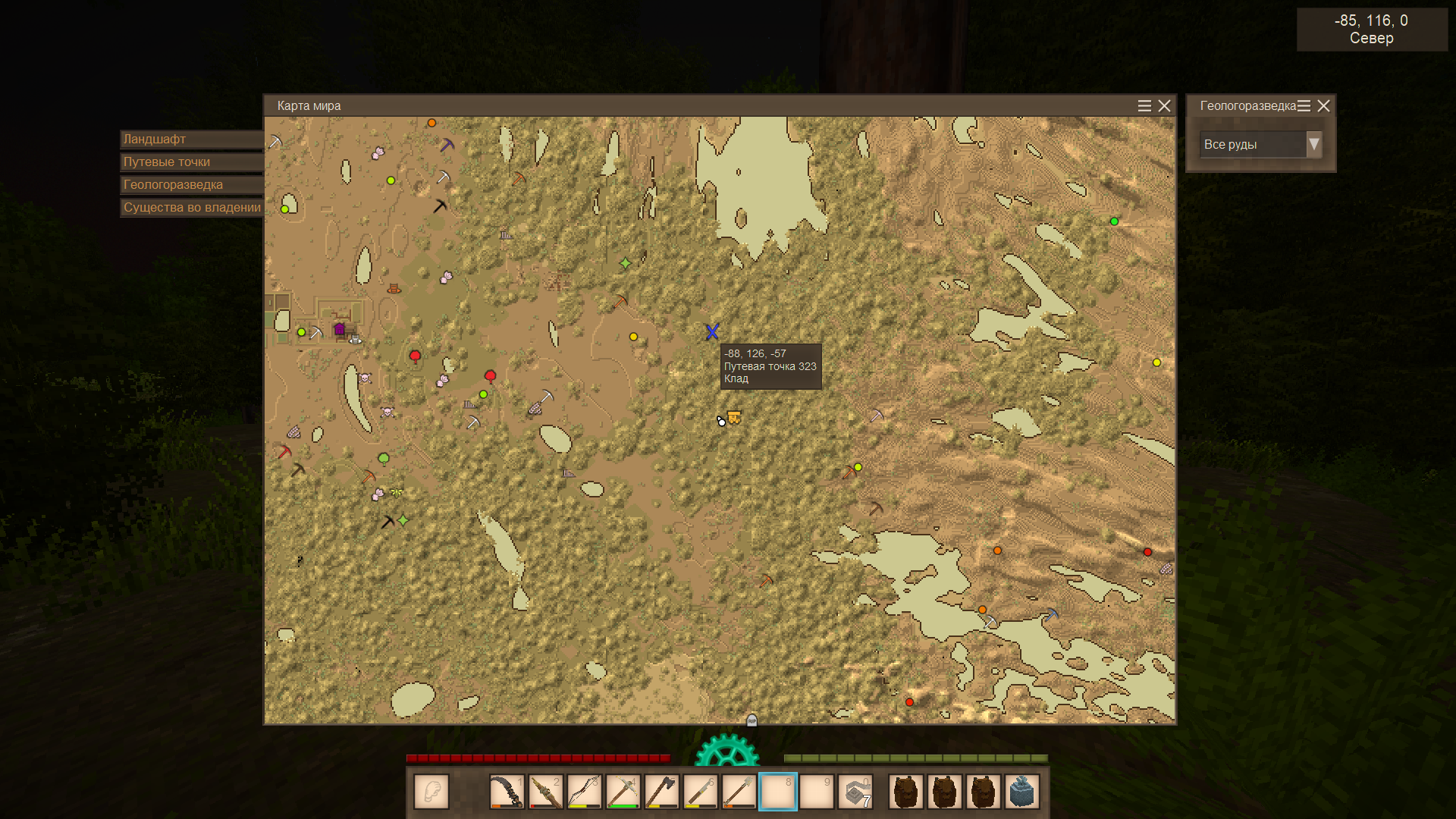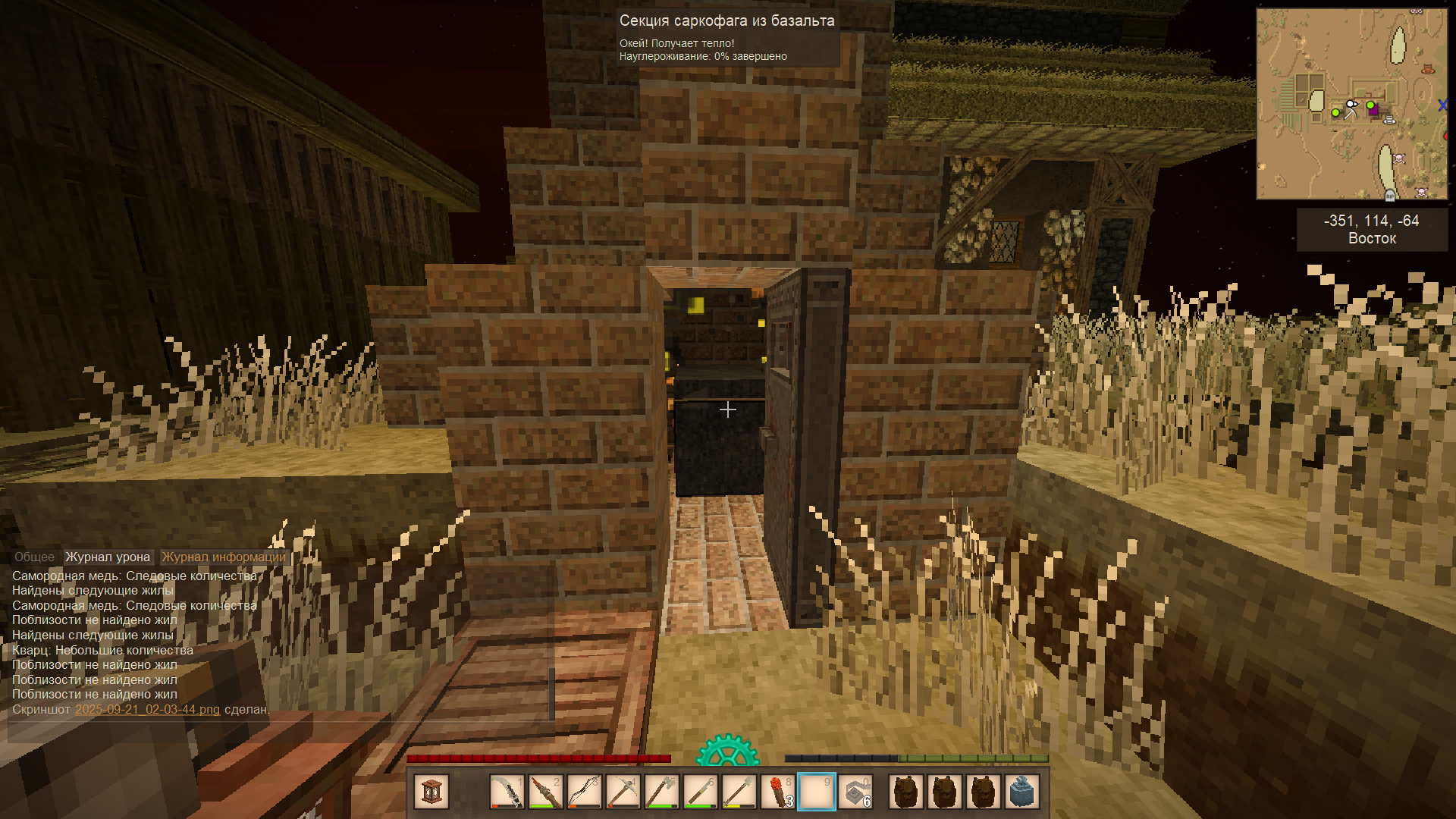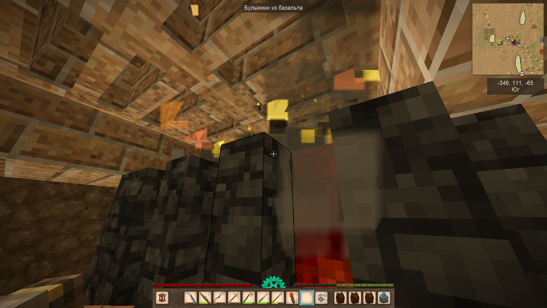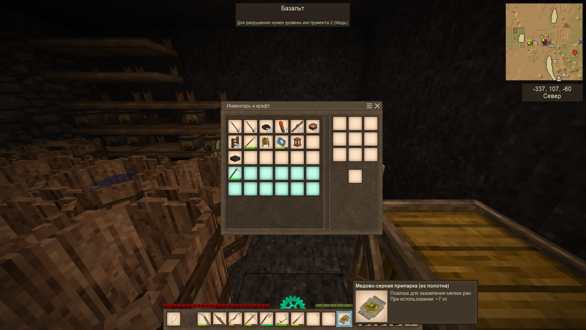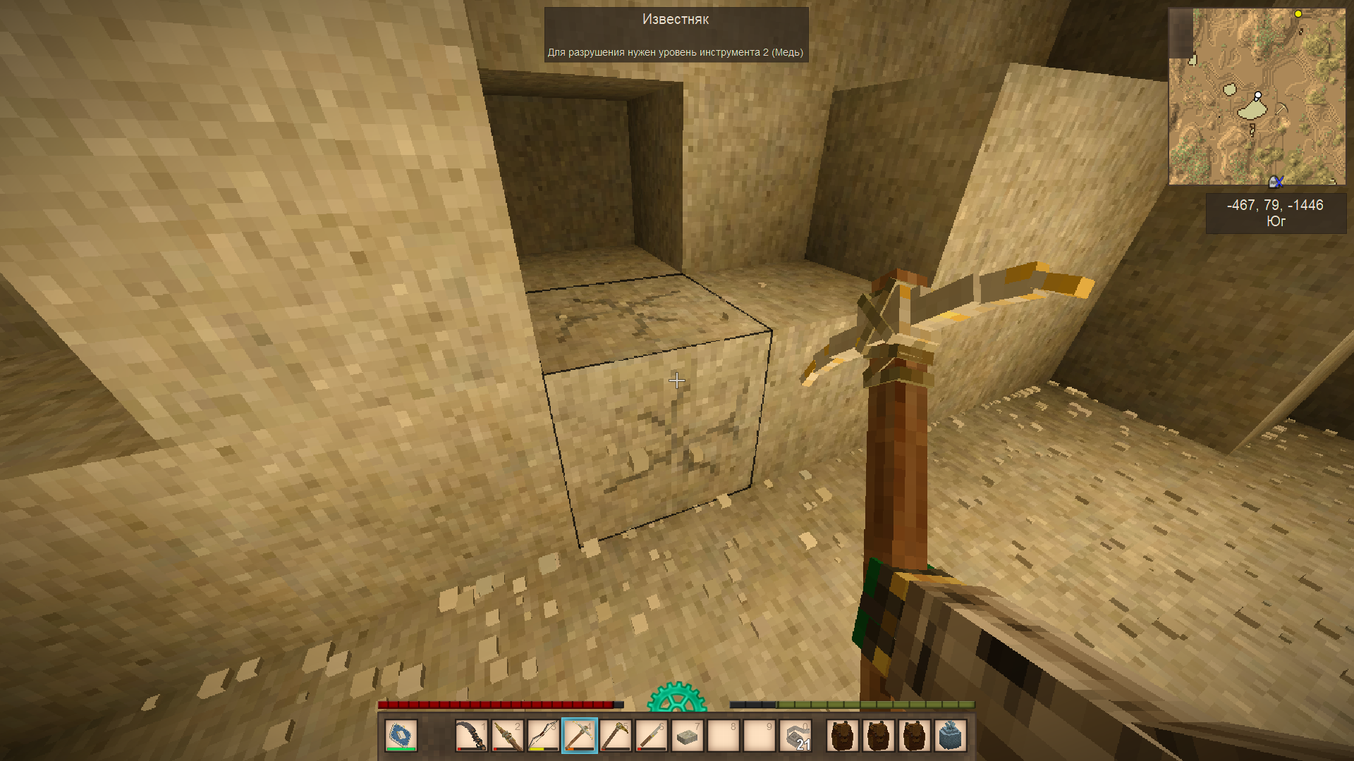 А ещё наткнулся на пещеру с некими окислами. Молоток показал, что рядом есть сера. А ещё там дохера монстров и какой-то саранчи было.
