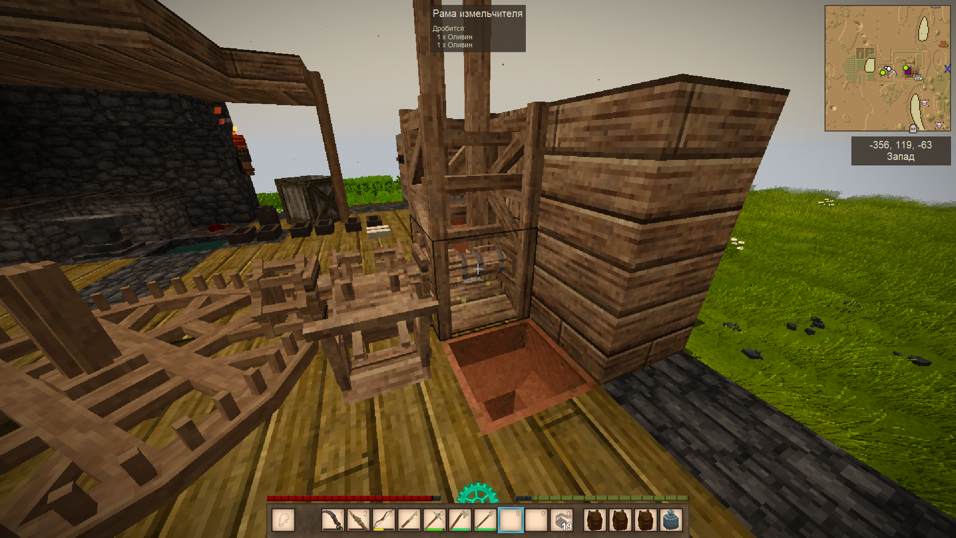 А рычажной молот автоматизирует процесс обработки крицы и создание пластин, серьёзно ускоряет работу, но надо чтобы дул нормальный ветер, иначе скорость никакая.