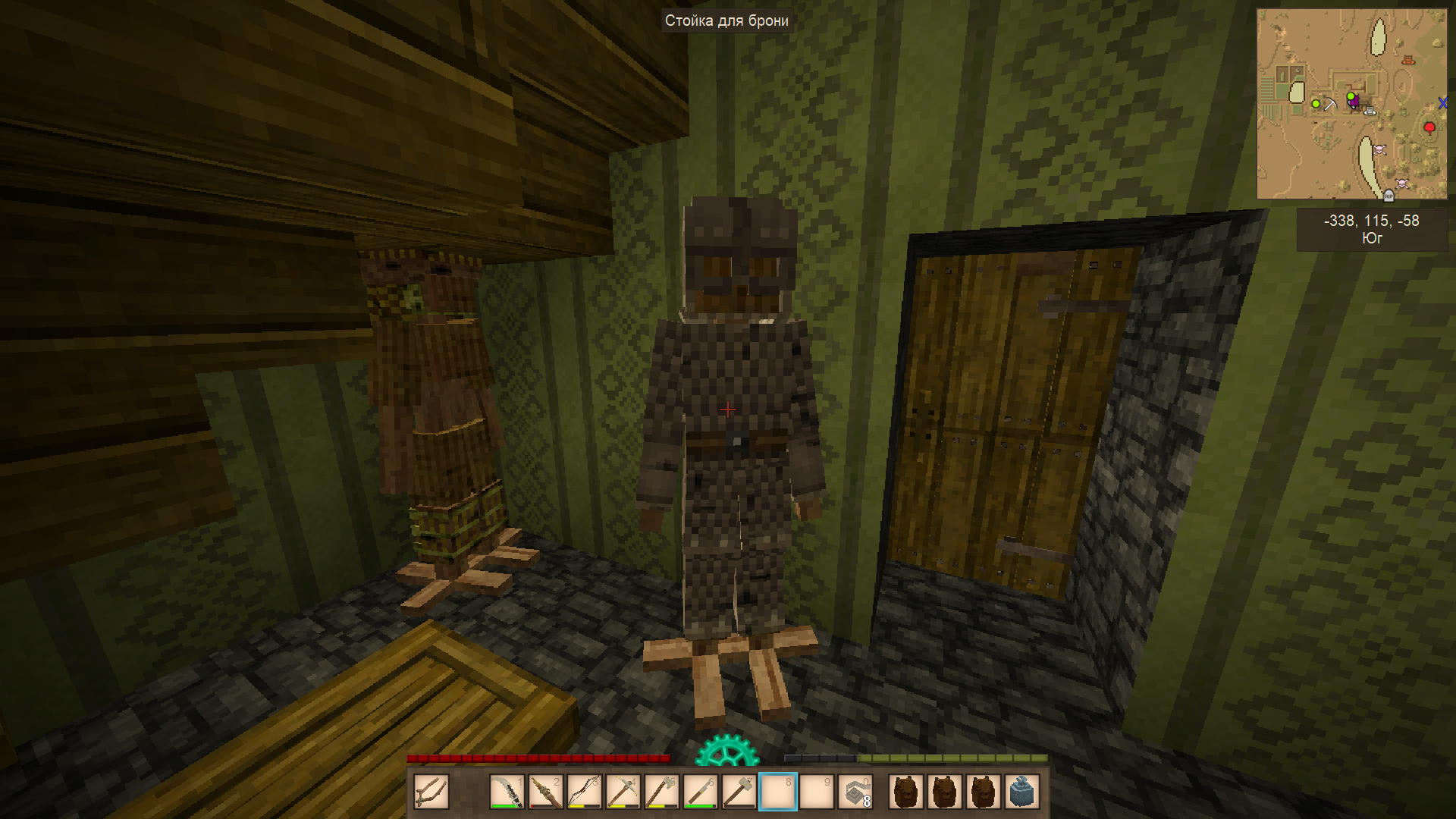 Собрал железную чешуйчатую броню, решил латные доспехи всё-таки не делать (не понравились дебаффы плюс железа надо, вроде как, в два раза больше чем на чешуйчатую)
