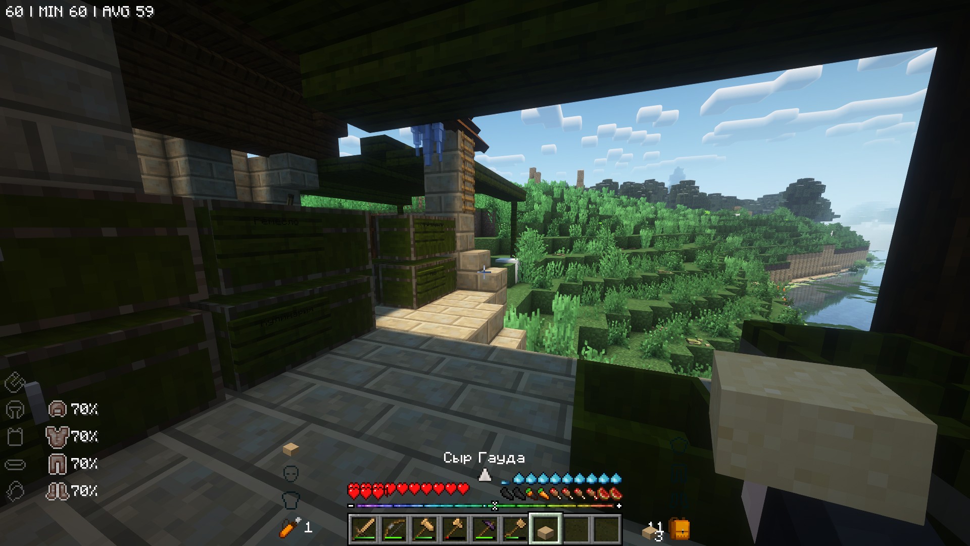 Просто прекрасный вид игры с шейдерами. Наконец-то я могу играть в Манякрафт с шейдерами с более менее нормальным FPS! (хоть и показывает 60, по ощущениям будто 40-50 всё же)