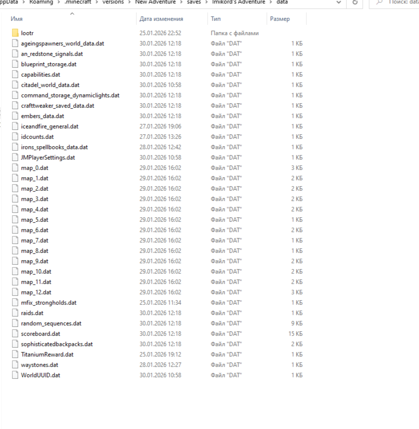 покажи-ка мне внутренности папки "data" - она по пути: ".minecraft/saves/название мира"