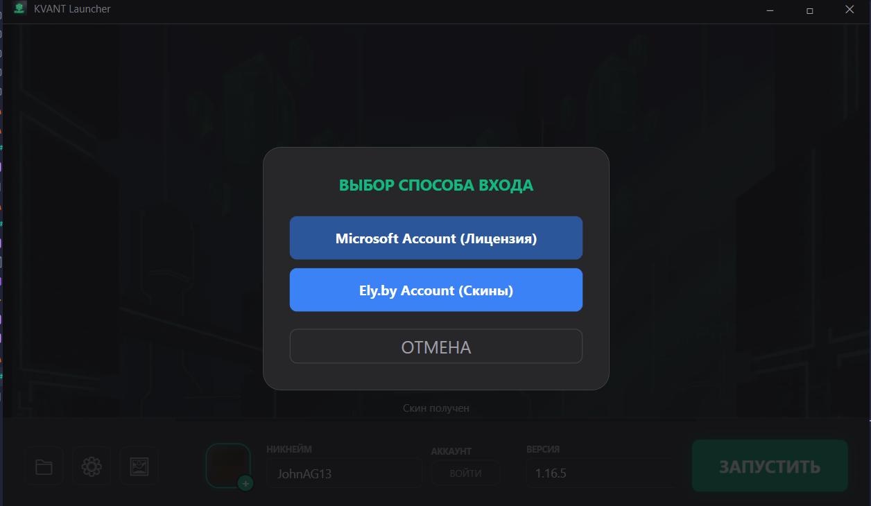 Всем привет. Я прислушался и добавил авторизацию по Microsoft и Ely.by. Пока это работает криво: в игре не прогружаются скины (хотя в лаунчере через Ely.by голова видна), и появилась проблема с самим майном — не могу зайти в мультиплеер. Я уже работаю над этим. Вот несколько скриншотов: