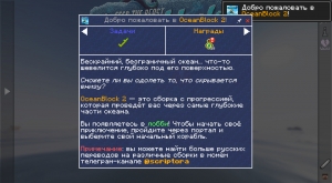 FTB OceanBlock 2 - спасательная капсула с игроком терпит крушение на неизведанной водной планете, среди одинокого и загадочного океана. Исследуйте специальные сооружения, рассеянные по бескрайним водам, раскрывайте мрачные тайны, удерживающие вас на этой планете, и выполняйте захватывающие квесты для прогресса. Сразитесь с опасными монстрами бездны и найдите путь домой в этом атмосферном приключении в мире подводного выживания.
