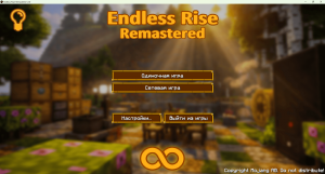 Новые текстуры, меню и музыка: Мы создали собственный ресурспак Endless Rise Textures, который изменяет стандартные текстуры игры под стиль сборки, а также включает целых 9 собственных треков для игры. Кроме этого, мы изменили главное меню игры!