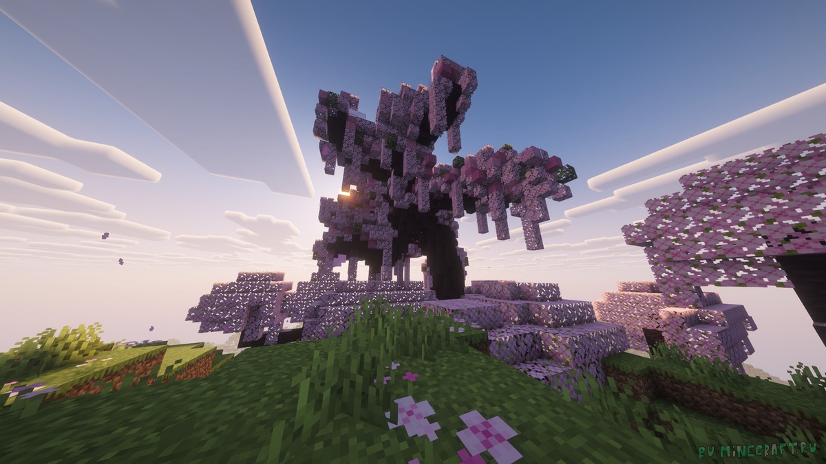 Ещё мод мод-структура, что добавит в черешневый биом спавн огромного дерева, что в разы больше стандартных деревьев. Даже листва на нем гораздо больше и будто бы свисает с веток. Кроме дерева мод ничего в себе не несет - просто немного разнообразия для розового биома.