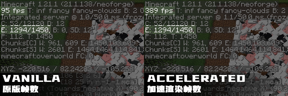 Accelerated Rendering - мод оптимизирует рендеринг объектов исключительно на стороне клиента, используя вычислительные шейдеры GPU для повышения производительности при работе с большим количеством или сложными, модифицированными объектами, одновременно сохраняя совместимость с пакетами шейдеров и другими модами.