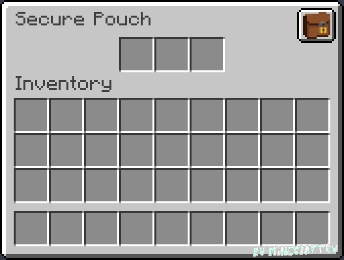 Мод добавит в майнкрафт защитный мешочек, в котором всего 3 слота, зато он не пропадет у игркоа после смерти, поэтому там можно хранить самые ценные предметы, чтобы не потерять их после гибели. Этот мешочек особенно хорошо для подземного мира, где можно после гибели потерять все предметы в лаве.
