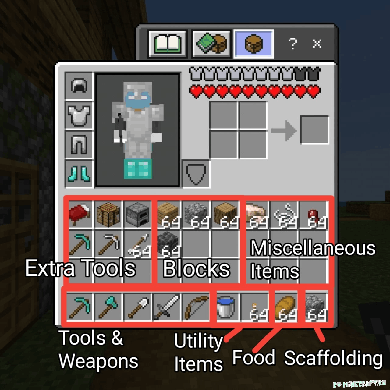 Небольшой, но крайне полезный мод для тех, кто много времени проводит в пещерах - он будет автоматически сортировать предметы в инвентаре, добавляя в быстрый доступ только оружие с инструментами, факелами и едой, чтобы игрок всегда мог избежать опасности, а уже в самом инвентаре тоже рассортировывает руды, различные вещи для крафта и просто блоки между собой.