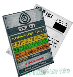 Мод добавит из вселенной SCP объектом под номером 151 или же Картина. Эта картина очень опасна, так как тот, кто на неё посмотрит дольше 1.5 секунд, умрёт от утопления. Если игрок взглянет на неё дольше 1.5 секунд, то через 24 часа он погибнет от недостатка воздуха как при утопании. Чтобы этого не произошло, на неё нужно смотреть только мельком или же накрыть её тканью, дабы закрыть от любого взгляда.