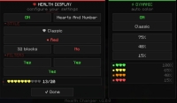Мод добавит в майнкрафт ещё одну разновидность указателя здоровья у мобов, включая монстров. У монстров это будет красная полоска, которая как бы указывает, что моб враждебных, а у нейтральных животных это будет зелёная полоска. Можно настроить значки под себя, причём достаточно хорошая кастомизация, открывается меню кастомизации на кнопку H (англ.).