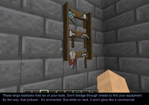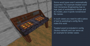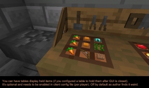 Workshop for handsome adventurer - мод добавляет в игру практичные предметы для удобства: улучшенные верстаки, которые сохраняют предметы после закрытия, позволяют получать доступ к соседним сундукам и даже имеют двойную версию с двумя сетками крафта, стойки для инструментов и полки для зелий, где предметы размещаются и берутся простым кликом правой кнопки мыши, причём на полке для зелий в одном слоте можно хранить несколько бутылок; книжные полки для быстрого доступа к литературе без поиска в сундуках; а также списки задач, которые можно носить с собой или вешать на стену.