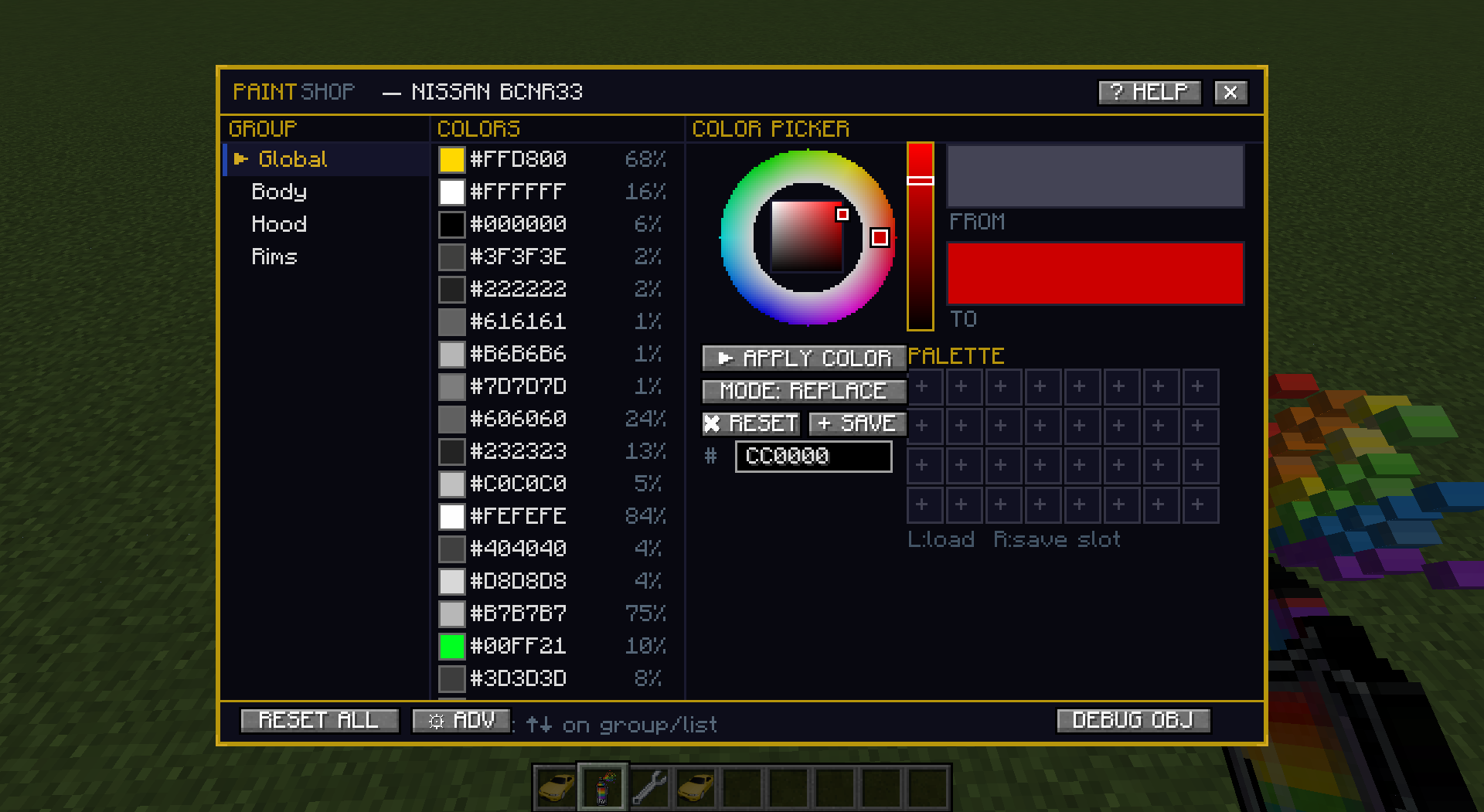 [Immersive Vehicles Add-on] IV Paint - позволит изменять цвет транспортных средств с помощью точных RGB-значений. Мод добавляет предмет Краскопульт, который открывает удобный редактор цветов: вы можете заменить заводскую окраску, тонировать отдельные детали, сохранять любимые оттенки в палитру и синхронизировать изменения со всеми игроками на сервере.