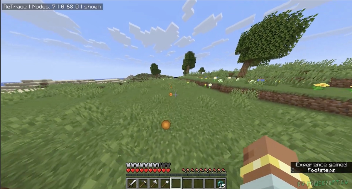 Мод добавит в майнкрафт отображение пути, который прошел игрок - при нажатии кнопки буквально покажутся разноцветные орбы, которые отобразят дорогу, который шел игрок. Это позволит запоминать дорогу, которую идет игрок, чтобы потом ей же и вернуться просто бз лишних сложностей.