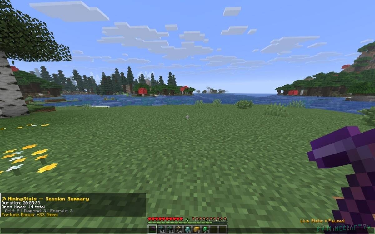 Мод добавит в майнкрафт трекер, который будет следить за тем, сколько и чего добыл игрок-шахтер во время своих походов по темным подземельям. Можно будет увидеть сколько всего руд и каких именно удалось выкопать за игровую сессию. Включается трекер при помощи кнопки J (англ.). Худ справа снизу будет показывать итоги для игрока.
