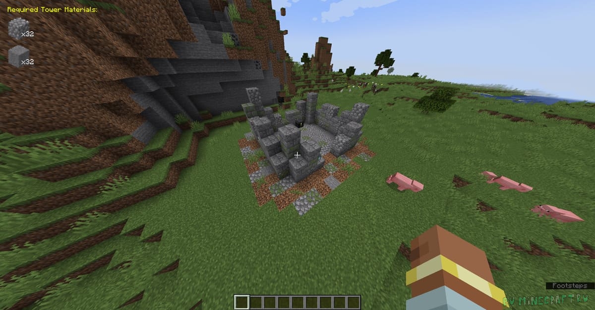 Необычный мод, что спавнит в майнкрафте рядом со спавном игрока башню, которую ему необходимо достроить. То есть нужно будет буквально искать ресурсы, которые нужно для постройки, чтобы башня строилась, необходимые блоки для постройки будут указны сверху слева, их нужно будет класть в сундук башни, чтобы она строилась.