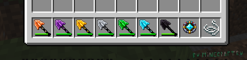 Мод добавит в майнкрафт новые лопаты, которые значительно упросят жизнь игроку при изменения ландшафта под свои нужды, ведь они вместо разрушения одного блока разрушают сразу 6 блоков. Чем круче новая кирка в крафте, тем быстрее копает и больше у нее прочности, но это и так понятно.