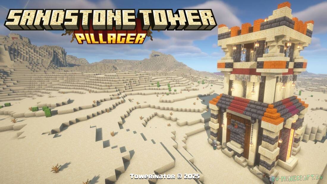 Desert Starter Pillager Tower - стартовый дом для игрока в пустыне [1.21.11] [1.20.1]