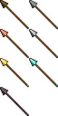 - Урон зависит не только от материала копья, но и от скорости игрока или атакуемой цели