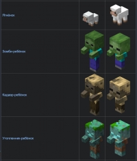 - Большинство мобов получили новые модели и текстуры детенышей.