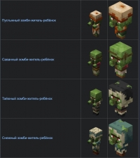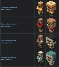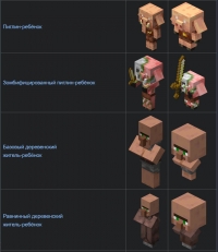 - Дети деревенских жителей и зомби-жителей теперь имеют базовую модель, поверх которой накладываются слои других текстур.