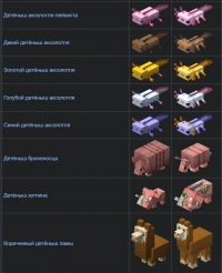 - Обновлены текстуры и модели большинства детенышей мобов.