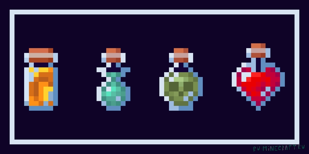 Очень красивый ресурспак в стиле RPG игр, он сделан специально в ярких и сочных тонах, этим самым автор противопоставил этот ресурспак обычным ресурспакам в стиле РПГ, где используются много тёмных контрастных текстур. На данный момент перерисован мир, некоторые мобы, меню, инструменты и ещё всего по чуть-чуть, скоро будет добавлено ещё много всего!