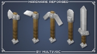 Много ресурспак с новым видом инструментов не бывает, поэтому вот еще один - по классике заменены все сеты инструментов (лопата, кирка, мотыга, топор, меч) и некоторые другие инструменты по типу удочки и все это сделано в красивом минималистичном стиле, который отлично смотрится в игре.