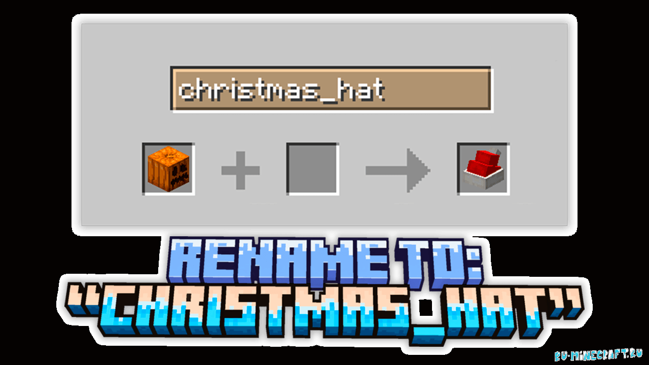 Для того, чтобы получить такую шапку, надо переименовать в наковальне тыкву с вырезанной модой в christmas_hat.