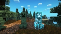 Автор ресурспака изменил в майнкрафт внешний вид криперов, при этом текстура по сути осталось та же, только в разных биомах она выглядит по-разному - где-то темнее, где-то светлее, а где-то будет коричневая, если это глубоко под землей, или же может быть розовы, если это черешневый биом.