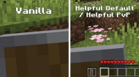 Ресурспак предназначен прежде всего для любителей пвп боев на сервере, тут для них куча изменений, что облегчат им жизнь. Среди изменений маленькие мечи и щиты, убраны частицы у дождя и снега, чистая вода, включая отключение тумана при нахождении в ней, все частицы у эффектов стали меньше, убрана маска у тыквы, меньше эффект огня и так далее.