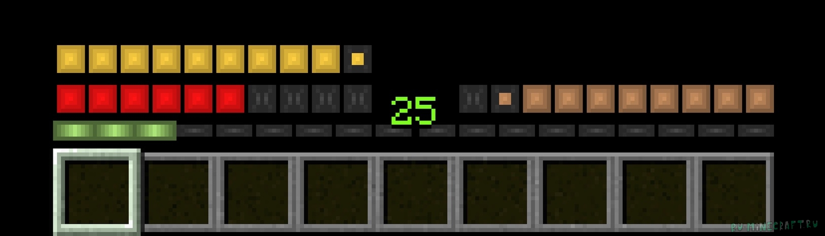 Маленький ресурспак, который изменит в майнкрафт только худ снизу главного экрана игрока - теперь все показатели (здоровье, голод, броня и даже полоска) будут квадратными. Еще больше квадратности для квадратного мира игры.